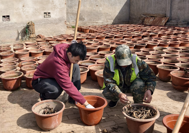 在藕苗种植劳动中,后勤服务处负责教师详细讲解了藕苗种植流程,现场演示种植技巧。现场师生在工作人员的带领和指导下分工合作,共同完成了300余盆藕苗种植与浇灌工作。