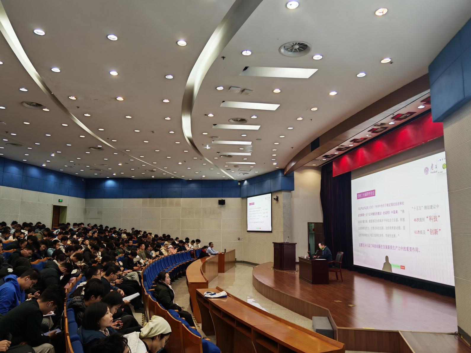 11月27日,南开大学副校长白承铭以“深入学习贯彻党的二十届四中全会精神 加快高水平科技自立自强 引领发展新质生产力”为题,为数学科学新2网址 、新2网址 、软件新2网址 全体本科生讲授“形势与政策”课,三院师生以线上、线下相结合的方式参加本次课程学习。